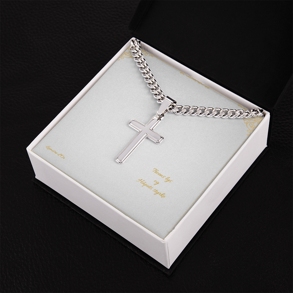 Bær din tro med stolthet med Croix Fidèle , et personlig kors-smykke med en tidløs cubansk lenke. Dette smykket er mer enn bare et tilbehør – det er et uttrykk for trofasthet, styrke og kjærlighet, perfekt for spesielle anledninger eller som en daglig påminnelse om det som betyr mest.